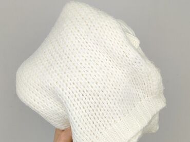 Biały sweter damski, dziergany, z okrągłym dekoltem. - Kolor: śmietankowa biel z delikatnym, subtelnym połyskiem w włóczce - Splot: luźniejszy, wyraźnie fakturowany; boki z dekoracyjnym przeplatan...Stan: