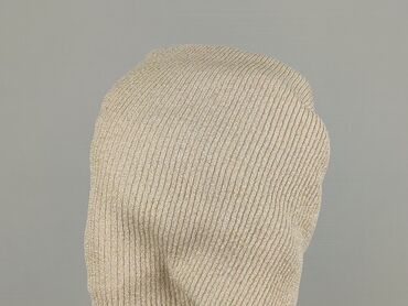 Sweter damski z dzianiny o metalicznym połysku - Krój: długi rękaw, lekko asymetryczny dół, dekolt łódkowy/kwadratowy - Kolor: melanż beżowo‑złoty z delikatnym, satynowym połyskiem - Splot: luźna,...