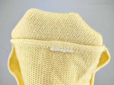 Ażurowy sweter/kardigan damski w kolorze pastelowej żółci. - Fason: rozkloszowany dół, swobodny krój; dłuższy tył z krótkim rozcięciem na środku - Zapięcie: na plecach trzy małe guziki - Rękawy: d...