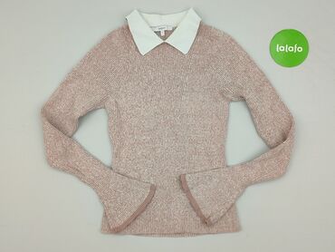 Idealny model do stylizacji „preppy” – sweter łączy miękką, prążkowaną dzianinę z eleganckim, kontrastowym kołnierzykiem. Dla kobiet. Nie dla niemowląt. Używany.