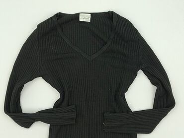 Czarny damski sweter/bluzka marki MSERYL (metka: M). - Fason dopasowany, elastyczny prążkowany dzianinowy materiał podkreślający sylwetkę - Dekolt w kształcie litery V - Długie rękawy - Dłu...