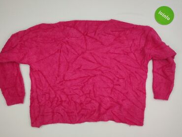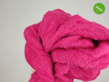 Damski sweter/ponczo w intensywnym różowym kolorze - Krój: luźny, z szerokimi rękawami do łokcia i obniżoną linią ramion; prosta, lekko łódkowa stójka dekoltu - Dzianina: efektowny, geometryczny s...
