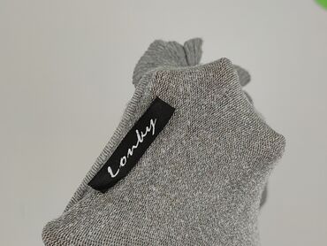 Szary sweter damski z ażurowym wzorem - Krój: luźny, z obniżoną linią ramion - Rękawy: 3/4 z szerokimi, prążkowanymi mankietami - Dekolt: łagodnie zaokrąglony - Dół: ściągacz z wiązaniem/sznurkiem...