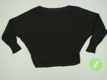 Ażurowy sweter damski, kolor czarny. - Fason luźny, z obniżoną linią ramion i krótszym rękawem typu nietoperz. - Splot ażurowy w poziome pasy – przewiewny, idealny do warstwowych stylizacji. - Okr...Stan: