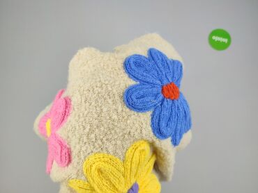 - Ozdoby: duże, miękkie aplikacje kwiatów z włóczki na przodzie (różowy, niebieski z pomarańczowym środkiem, żółty z fioletowym środkiem) oraz na rękawach (zielone i pomarańczowe płatki)