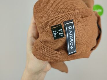 Czapka damska typu beret, wykonana we Włoszech. Dzianina w kolorze taupe/ciemny beż, z ażurowym wzorem (romby i delikatne dziurki) oraz elastycznym, prążkowanym rantem zapewniającym dobre dopasowan...Stan: