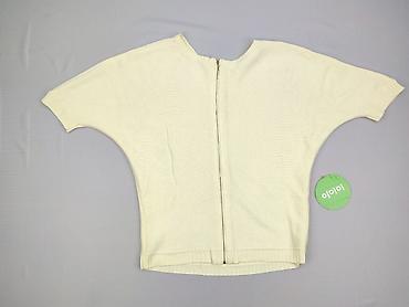 Sweter damski w kolorze ecru/kremowym, o luźnym kroju z obniżoną linią ramion i krótkimi rękawami. Dzianina o drobnym, gęstym splocie, przyjemna w dotyku. Okrągły dekolt. Dół i mankiety wykończone ściągaczem. Z tyłu pełnej długości suwak ułatwiający zakładanie. Dyskretna metalowa plakietka przy dolnej krawędzi. Idealny do stylizacji casual i smart-casual. Przeznaczenie: dla kobiety.