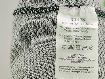 Sweter damski NÜMPH - Marka: NÜMPH (etykieta „MAKE AN ENTRANCE”) - Rozmiar: S - Kolor: jasnoszary melanż - Wzór: geometryczne motywy i pasy w odcieniach czerni oraz koralowego - Krój: klas...Stan: