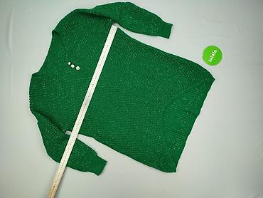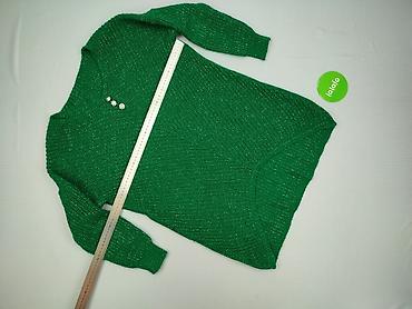 Zielony sweter damski w prążek - Fason: klasyczny, z okrągłym dekoltem i długim rękawem - Dzianina: elastyczna, średniej grubości, prążkowana na całej powierzchni; przyjemna w dotyku - Kolor: inte...Stan: