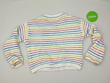 Sweter damski C&A, rozmiar S. - Fason: klasyczny, z okrągłym dekoltem, długie rękawy - Kolorystyka: żółta góra przechodząca w biało‑żółte, wąskie poziome pasy - Detale: szerokie, prążkowane ściąga...