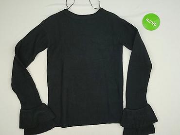 Elegancki sweter idealny do stylizacji codziennych i wieczorowych; falbaniaste mankiety nadają mu kobiecego charakteru. Dla kobiety, rozmiar XS. Nie dla niemowląt. Używany.