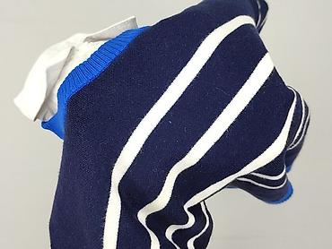 - Kolor: granatowy z białymi poziomymi paskami; ściągacze i dół w intensywnym kobaltowym odcieniu, biały kołnierzyk.