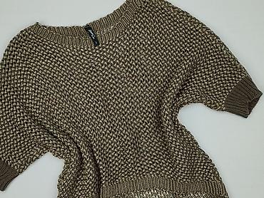 Damski sweter dzianinowy, kolor camel/karmelowy. - Fason: luźny, z obniżoną linią ramion; przód/tył z charakterystycznym trójkątnym dekoltem w kształcie litery V i przeszyciem pośrodku - Długość: ...Stan: