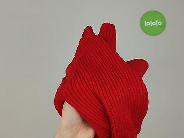 Czerwony, prążkowany sweter damski z długim rękawem. Krój dopasowany, długość do pasa (lekko crop). Dekolt w kształcie litery V z delikatnie falowanym wykończeniem krawędzi, dół również lekko pofalowany. Miękka, elastyczna dzianina prążkowana.