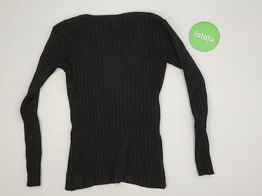Damski sweter z długim rękawem, czarny, o prążkowanej, lekko fakturowanej dzianinie. Okrągły dekolt. Ozdobne metalowe napy/guziki na obu ramionach (po trzy z każdej strony). Elastyczny ściągacz prz...