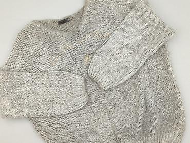Sweter damski, dzianinowy, szary melanż - Krój: lekko skrócony (cropped), luźny, z opuszczoną linią ramion - Dekolt: półgolf/ribbed mock neck - Długość rękawa: długi - Splot: dekoracyjne połączeni...