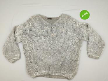 Sweter damski, dzianinowy, melanżowy - Kolor: szaro-biały melanż - Krój: klasyczny, proste body, długie rękawy - Dekolt: okrągły (crew neck) - Splot: grubszy, wyraźna faktura; ściągacze przy kołni...