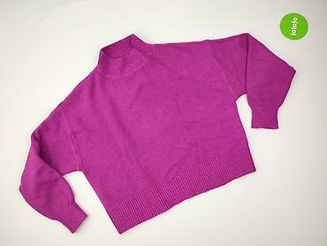 Sweter damski, fuksjowy/fioletowy, dzianina z delikatnym „włosem”, dekolt w kształcie litery V, długie rękawy, ściągacze przy mankietach i u dołu. - Materiał: 30% akryl, 70% nylon - Pochodzenie: M...