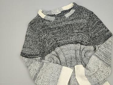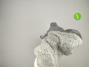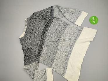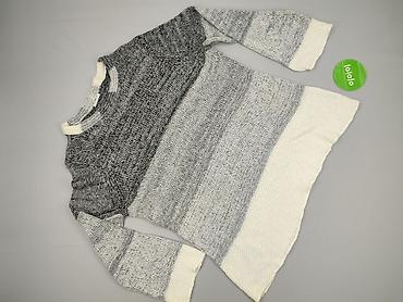 - Wzór/kolor: melanżowe, poziome pasy w odcieniach szarości i écru; mankiety i dół w jaśniejszym, grubszym splocie