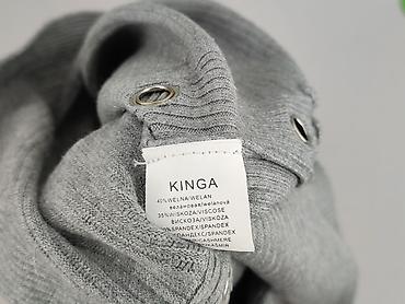 Szary damski sweter/ponczo z dzianiny, rozmiar XL - Krój oversize, luźny, z obniżoną linią ramion – między swetrem a ponczo. - Okrągły dekolt. - Ozdobne, szerokie pasy z czarnej koronki – wzdłuż p...