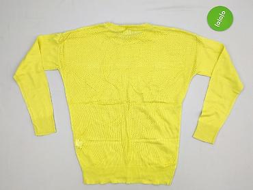 Sweter damski Reserved, rozmiar S - Kolor: jasny, neonowy żółty - Fason: ażurowy, lekko transparentny; rękawy 3/4; dół i mankiety wykończone ściągaczami - Dekolt: łódkowy z przodu; z tyłu efektown...