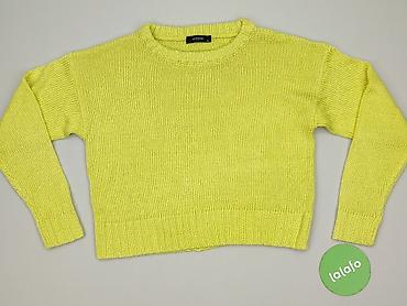 Sweter damski Reserved (yl) – rozmiar S - Kolor: neonowy żółty/limonkowy - Fason: luźny, lekko oversize; dół i mankiety z delikatnym ściągaczem - Rękaw: 3/4 - Dekolt: łódka - Splot: ażurowy, przew...