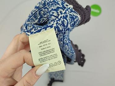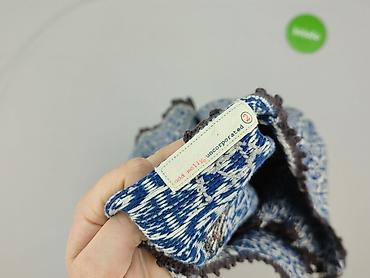 - Dzianina o grubszym splocie z charakterystycznym, geometrycznym wzorem w odcieniach granatu i bieli