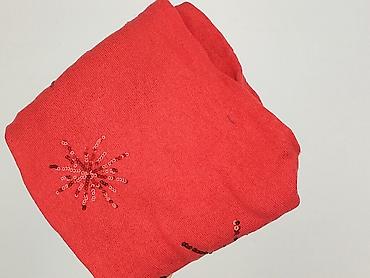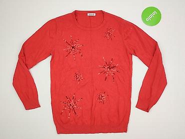Sweter damski DAMART, czerwony, z długim rękawem i okrągłym dekoltem. Przód zdobiony aplikacjami z cekinów w kształcie gwiazdek/fajerwerków w kilku rozmiarach, tył gładki. Ściągacze przy mankietach i u dołu. Miękka, cienka dzianina idealna do noszenia na co dzień i odświętnie. Klasyczny, prosty krój podkreślający sylwetkę.