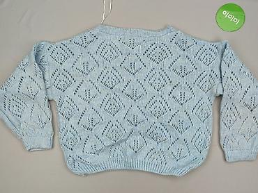 Sweter damski, niebieski, dzianinowy - Krój: luźny, z obniżoną linią ramion; lekko wydłużony tył - Dekolt: okrągły - Rękawy: długie z szerokimi, elastycznymi ściągaczami - Splot: wyraźna, struktur...Stan:
