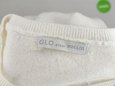 Sweter damski P-M, rozmiar z metki: XL/XXL. - Kolor: jasnoszary, z delikatnym, błyszczącym połyskiem - Fason: klasyczny, dopasowany, z okrągłym dekoltem - Dzianina: prążkowana pionowo; po bokach s...