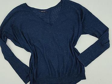 Sweter damski PROMOD - Model: dzianinowy sweter z długim rękawem - Kolor: beżowy melanż - Krój: prosty, lekko luźny - Dekolt: w kształcie litery V (subtelne ażurkowe oczka wzdłuż linii dekoltu z p...