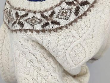 - Kolor: kremowy/ecru z brązowym, żakardowym wzorem przy dekolcie oraz na mankietach