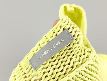 Sweter damski C&A, rozmiar S. - Fason: klasyczny, z okrągłym dekoltem, długie rękawy - Kolorystyka: żółta góra przechodząca w biało‑żółte, wąskie poziome pasy - Detale: szerokie, prążkowane ściąga...