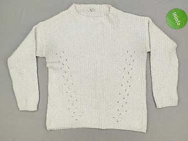Damski sweter z długim rękawem, „włochaty”, kremowy/ecru. - Rozmiar: M (EU M) – metka. - Fason: klasyczny pulower z okrągłym dekoltem, lekko wydłużony dół. - Dzianina o wyraźnym, ażurowym splocie i...