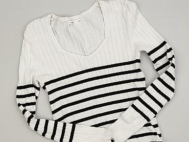 Sweter damski Sinsay, rozmiar L - Kolor: biały w czarne, poziome paski - Fason: klasyczny, z okrągłym dekoltem i długim rękawem - Materiał: cienka, miękka dzianina (przyjemna w dotyku, elastyczna)...