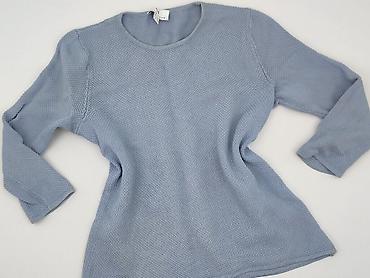 Niebieski sweter damski POLTEX, rozmiar M - Klasyczny krój z okrągłym dekoltem (crew neck) - Drobny, równy splot dzianiny; elastyczne ściągacze przy mankietach i u dołu - Subtelna, mała naszywka/h...