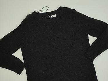Czarny sweter damski z długim rękawem, prosty krój, okrągły dekolt. Klasyczna dzianina o wyraźnej fakturze z delikatnym, subtelnym połyskiem.