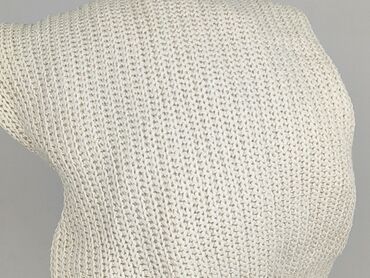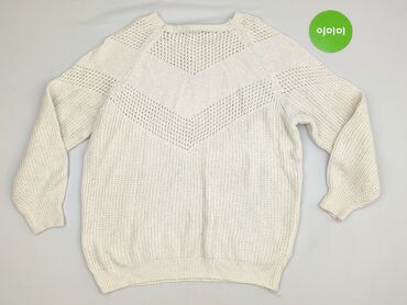 Ażurowy sweter damski – ecru/krem - Fason: luźny, prosty krój z długim rękawem - Dekolt: okrągły - Splot: ażurowa, przewiewna dzianina z widoczną strukturą oczek (idealny na warstwę na top lub kos...