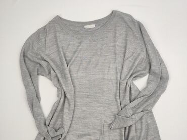 Sweter damski, szary melanż - Krój: swobodny, lekko skrócony przód i dłuższy tył - Dekolt: w kształcie litery V - Rękawy: długie, zakończone ściągaczem - Dół swetra: ściągacz - Splot: wyraźny, str...