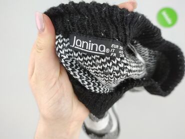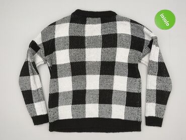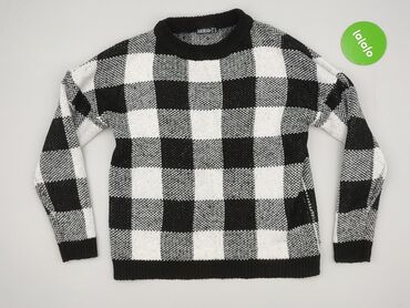 Sweter damski Janina, rozmiar EU 40 (UK 14, FR 42). - Krój: klasyczny, z okrągłym dekoltem i długim rękawem - Wzór: melanż czarno‑biały; z przodu duży napis „HEY HOLA HELLO” - Materiał: 92% poliakr...Stan:
