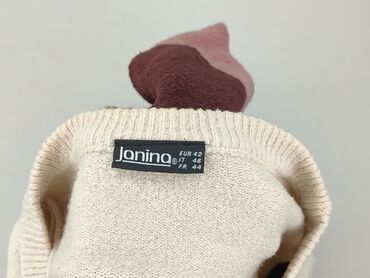 Ażurowy sweter damski Janina - Marka: Janina - Rozmiar z metki: 40 - Kolor: kremowa/biała kość słoniowa - Fason: sweter z długim rękawem, okrągły dekolt - Splot: wyraźny, ażurowy (siateczkowy), pr...