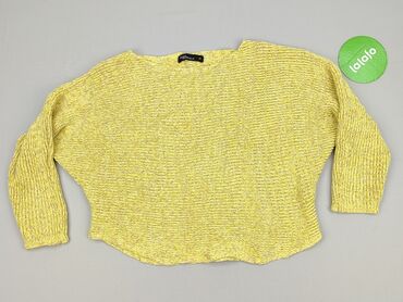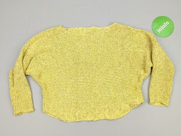 Sweter damski JEAN PASCALE, rozmiar S - Kolor: pudrowy róż - Fason: krótki/cropped, z dekoltem w serek - Splot: gruby, fakturowany (wafelkowy) - Detale: dekoracyjne wiązania po bokach na metalowyc...