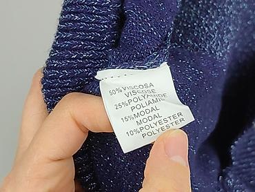 Sweter damski P-M, rozmiar M/L - Model: dzianinowy sweter z perełkowymi aplikacjami na przodzie - Kolor: niebieski melanż - Krój: dopasowany, okrągły dekolt, długie rękawy - Detale: dwie kieszenie...