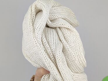 Sweter damski, kremowy/ecru, dzianina prążkowana - Fason: luźny, z obniżoną linią ramion - Dekolt: okrągły, ściągacz - Rękawy: długie, lekko bufiaste z ażurową linią przy dolnej części, zakończone...