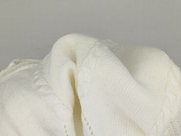 Sweter damski, dzianinowy, biały/kości słoniowej. - Fason: luźny, prosty, lekko wydłużony tył - Dekolt: w kształcie litery V z dekoracyjnym splotem na środku - Rękawy: 3/4 z szerokimi ściągaczami -...