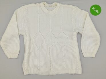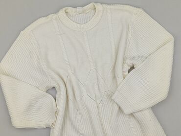 Kremowy sweter damski marki C&A, wykonany w 100% z akrylu. Charakteryzuje się ażurowym splotem w górnej części oraz na rękawach, co nadaje mu lekkości. Dół swetra ma bardziej zwarty, prążkowany wzó...