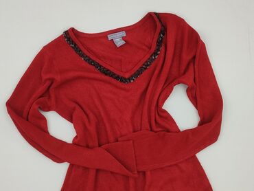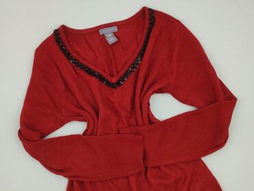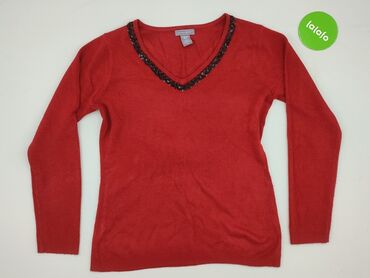 Sweter damski FOLK, rozmiar L. - Kolor: intensywna czerwień. - Krój: klasyczny, prosty, z okrągłym dekoltem i długim rękawem. - Detale: ażurowy wzór w jodełkę na dole swetra oraz na mankietach. - D...