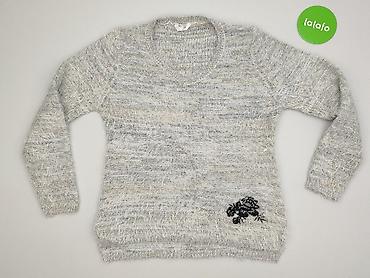 Sweter damski Peacocks, rozmiar M - Fason: luźny, z długim rękawem - Dekolt: okrągły, wykończenia ściągaczowe w kontrastowym, kremowym kolorze - Kolor/wygląd: melanż szaro-kremowy, wyraźna faktura...