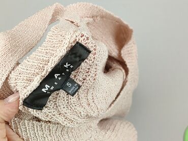 Sweter damski SINSAY, rozmiar S - Kolor: jasny pudrowy róż, melanż - Krój: luźny, z delikatnie wydłużonym tyłem (asymetryczny dół) - Dekolt: półgolf/rib mock neck - Rękawy: długie, z ozdobnymi wią...