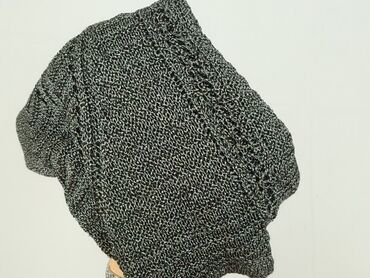 Srebrny, ażurowy sweter/top damski z połyskiem - Krój: skrócony (crop), szerokie rękawy typu kimono, dekolt w serek z przodu i z tyłu (V-neck). - Dzianina: lekka, przewiewna, ażurowa; metaliczna, ...